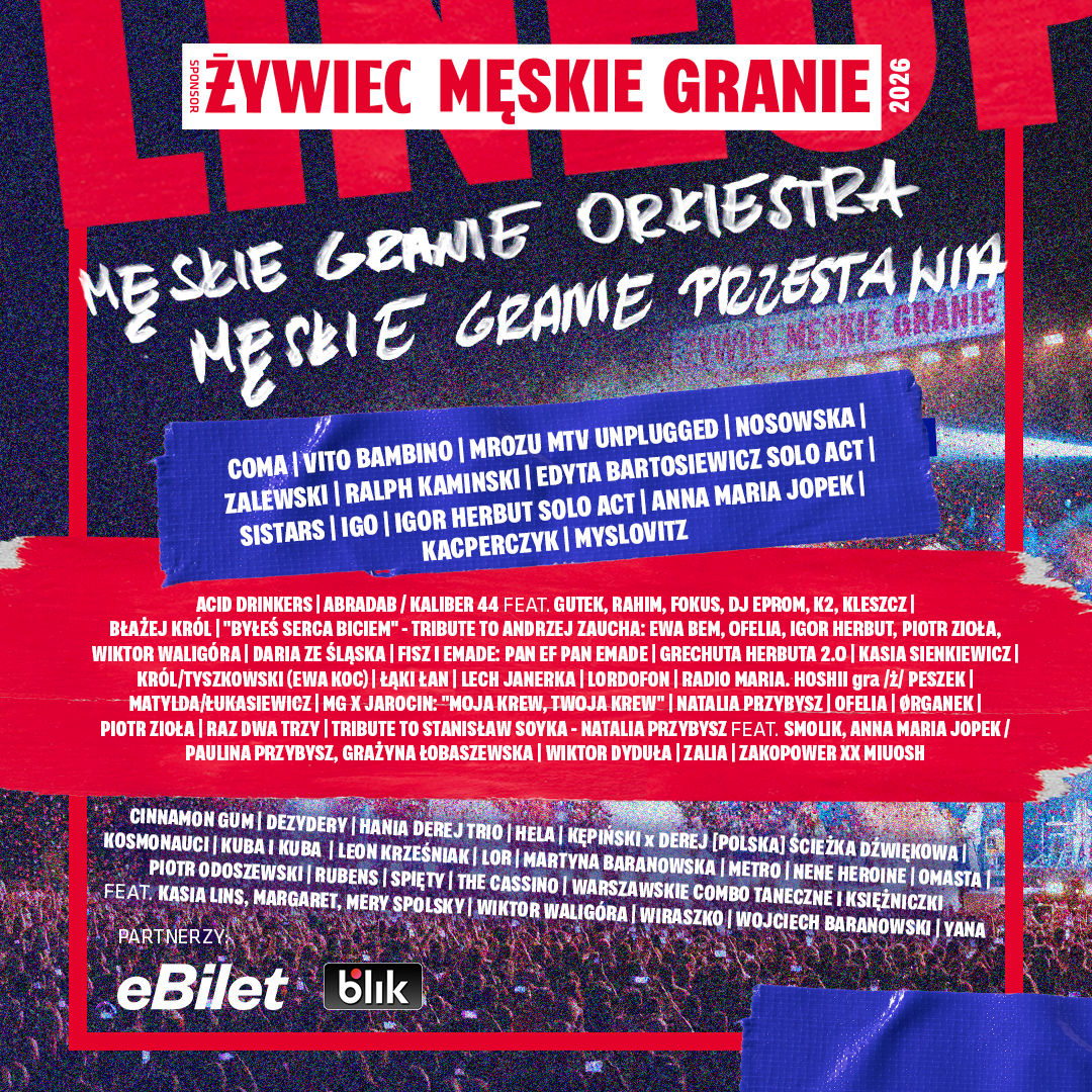 Sponsorowane przez markę Żywiec Męskie Granie przyzwyczaiło już fanów najlepszej polskiej muzyki do zapraszania na jedną scenę artystów z pozornie odległych muzycznych światów. Nie inaczej będzie w tym roku. W line-upie 17. edycji trasy Męskie Granie znalazło się aż 60 unikalnych muzycznych projektów. Nie zabraknie wielkich powrotów, tribute’ów, nieoczywistych muzycznych spotkań, jak i debiutantów, którzy po raz pierwszy będą mieli okazję zaprezentować się przed tak liczną publicznością. Z myślą o Męskim Graniu powstały m.in. projekty „Byłeś serca biciem” – Tribute to Andrzej Zaucha: Ewa Bem, Ofelia, Igor Herbut, Piotr Zioła, Wiktor Waligóra, a także Tribute to Stanisław Soyka – Natalia Przybysz Feat. Smolik, Anna Maria Jopek / Paulina Przybysz, Grażyna Łobaszewska. Na trasę powróci również legenda polskiego thrash metalu – Acid Drinkers, reaktywowany na Męskie Granie 2025 zespół Sistars oraz Igor Herbut z projektem, który zadebiutował podczas ubiegłorocznej edycji – tym razem w nowej odsłonie – Grechuta Herbuta 2.0. Zwieńczeniem piątkowych i sobotnich koncertów będą odpowiednio Męskie Granie Przestawia oraz Męskie Granie Orkiestra, których składy zostaną ujawnione niebawem.